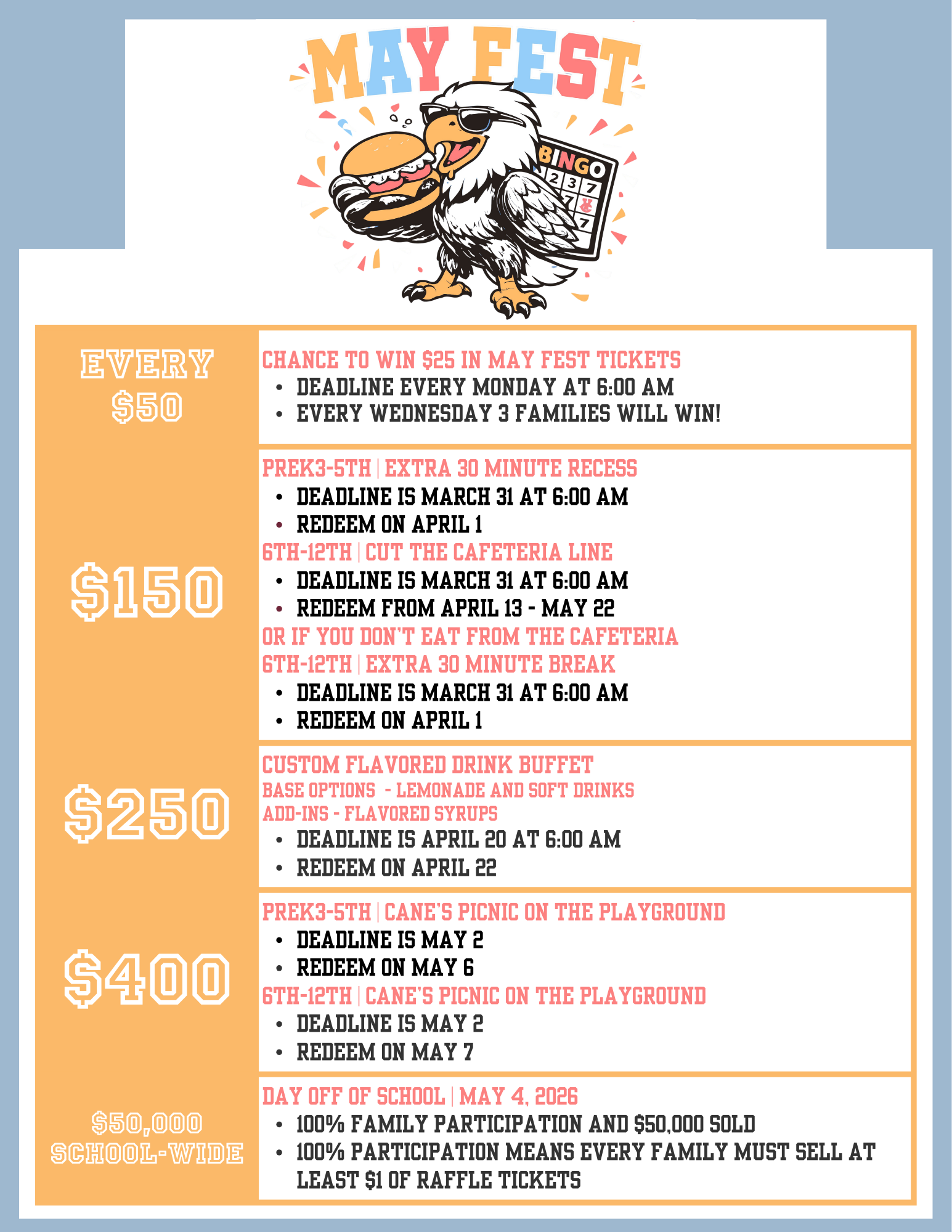 All proceeds from this raffle go toward enhancing the education of our students.  Because of your generosity, our raffles are always a huge success in furthering our mission.